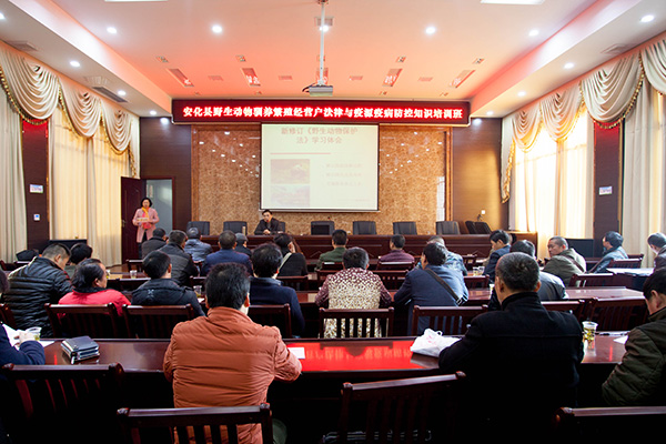 12月5日上午,bt365国际娱乐城举办全县野生动物驯养繁殖户经营户法人代表培训班,学习新修改的《中华人民共和国野生动物保护法》及野生动物疫源疫病预防预控知识培训。