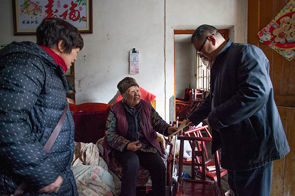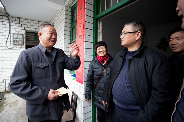 2017年1月12日下午,县林业局党组书记、局长陶月平带领副局长杨建军等党员一行,看望慰问走访了黄合居委的谌娟妹、谌早容、吴伍林、蒋端娣等特困群众,情真意切的表达对他们的春节问候,并为他们送上慰问金。