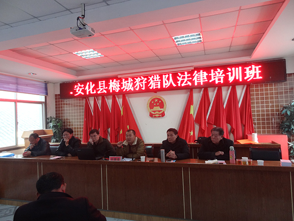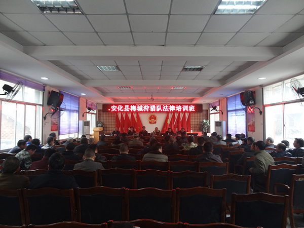 12月14日上午,bt365国际娱乐城组织梅城片区狩猎队狩猎人员进行了新修改的《中华人民共和国野生动物保护法》及野生动物疫源疫病预防预控知识培训。参加人员共计98人。