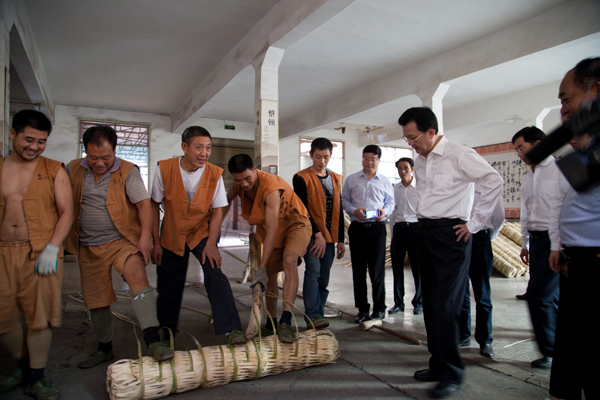 在白沙溪茶厂,邓三龙浏览了黑茶生产工艺流程,了解了黑茶发展的历史,他对该厂实行的厂长承包责任制很是赞同。省厅将茶叶纳入退耕还林范畴,一定程度上促进了安化黑茶的发展。谈到如何生产有机茶,邓三龙说,在茶园内不能施用农药,要培育天敌,以虫防虫,实施天敌战略,省厅天敌繁育中心可以帮助解决茶叶虫害问题。