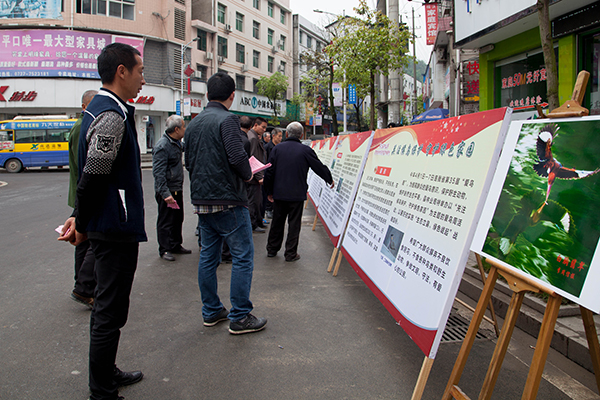 为提高群众的爱鸟意识,保护野生动物,维护自然生态平衡。安化开展了形式多样的宣传。一是县林业局制作5块宣传板块。在县政府门口、东坪镇完小、各乡镇等地开展以"依法保护鸟类,建设美丽中国"为主题的爱鸟周活动。活动期间,还展出由摄影爱好者在安化所拍摄的琵嘴鸭、黑领噪鹊、紫啸鸫等40余种候鸟图片60多副。候鸟们捕食、飞翔、嬉戏的美丽画面,吸引众多群众前来观赏。活动现场,还专门设置了咨询台,为过路行人发放安化野生动物保护宣传资料5000份,呼吁大家摒弃不良饮食陋习,不食各种鸟类和野生动物,争做文明、守法、有爱心的公民。县委书记杨光鑫、县长熊哲文等县领导出席活动;二是各乡镇在农贸市场、村庄、学校等人口集中地张贴爱鸟宣传横幅、标语200多条;三是通过电视、网络、微信等媒体进行爱鸟周宣传。安化林业信息网还开辟了爱鸟保护宣传专栏,倡导保护生态环境,鼓励人们关注野生鸟类,保护鸟类赖以生存的家园,从而更好地保护生物多样性,共同营造一个人与自然相互和谐的世界。